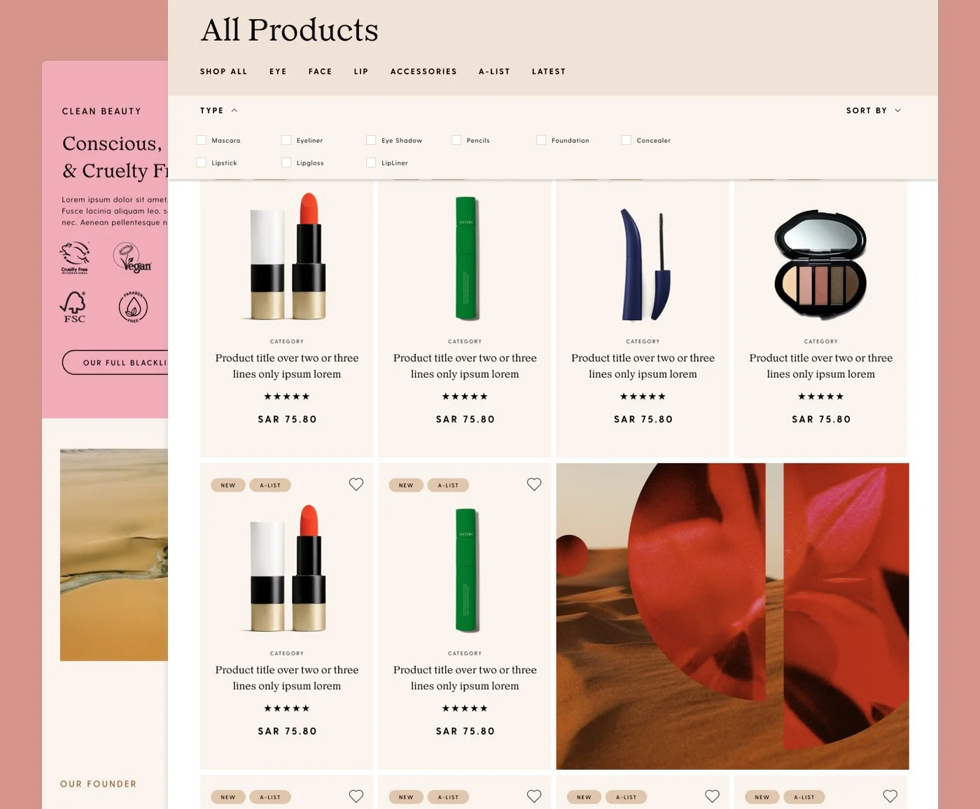 Inspired by the rich the heritage of Arabian beauty, this makeup e-commerce website was designed to blend cultural elegance with modern digital sophistication creating a visually captivating experience.
