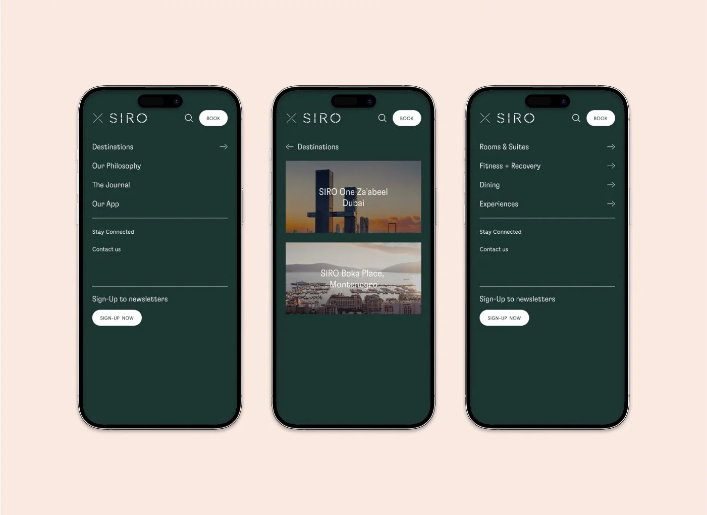 The UI design for SIRO Hotels was crafted to embody the brand’s philosophy of performance, wellness, and modern luxury through a digital interface that feels both aspirational and intuitive.