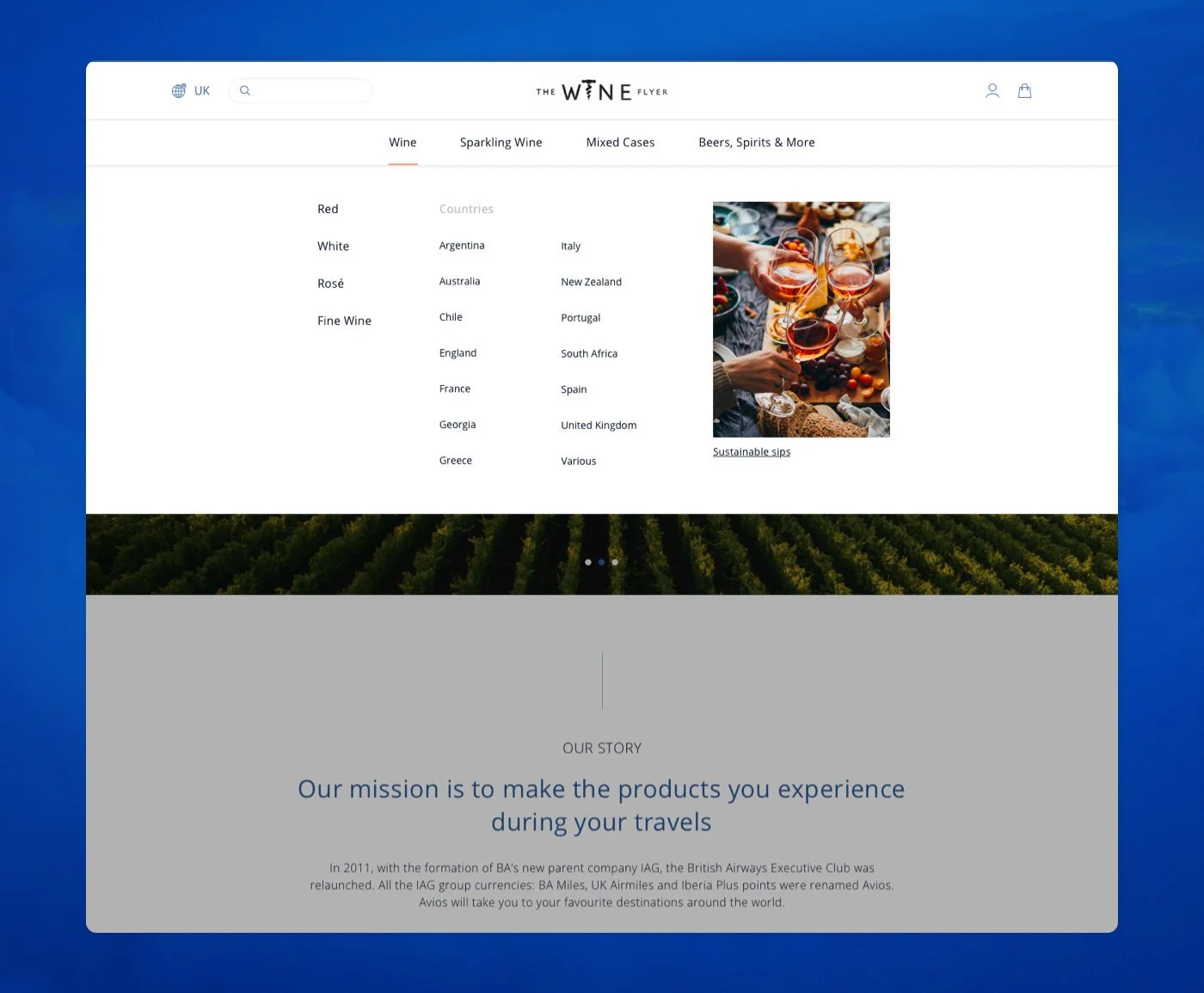 The Wine Flyer, an exclusive club for British Airways Executive Club Members, offers a selection of the finest wines from around the world. In order to boost their products online, in 2022, they decided to improve their UX/UI, making wine shopping experience more enjoyable.