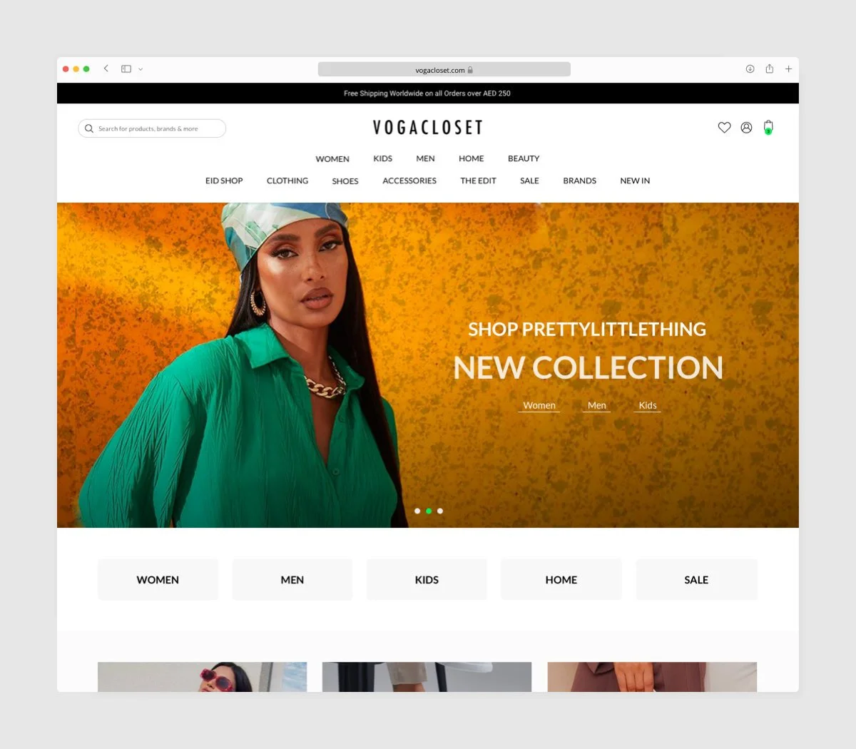 VogaCloset is a UK-based online fashion retailer bringing the latest trends for women, men, and kids — from the runways to the wardrobes of fashion enthusiasts across the Middle East. With a focus on strengthening its e-commerce presence in the region, the website underwent significant enhancements to deliver a more user-centric design, ensuring a seamless and engaging shopping experience.